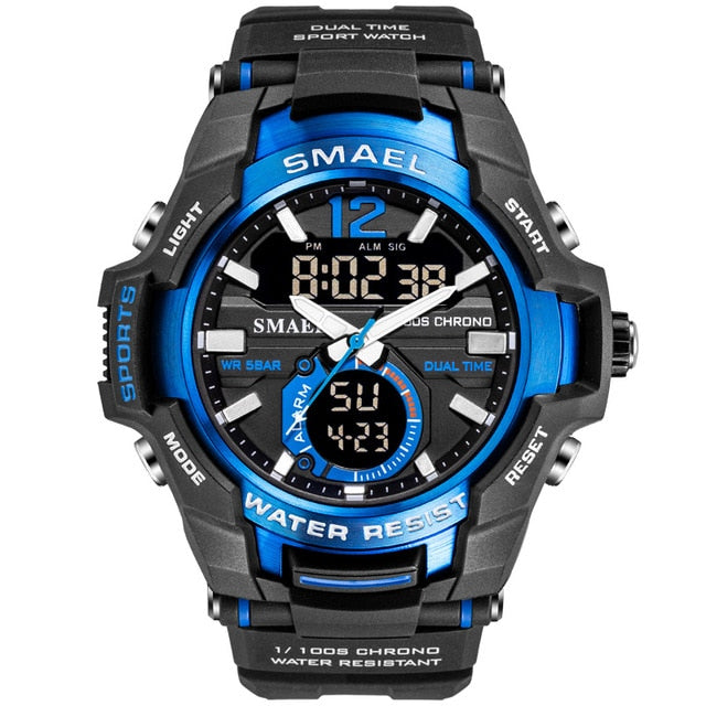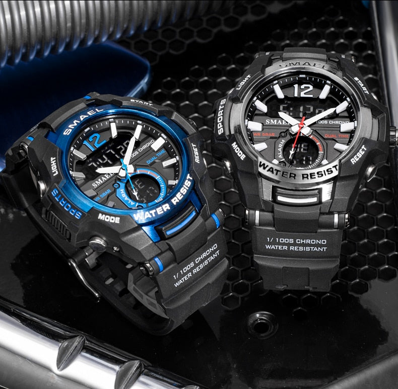 Com DISPLAY LUMINOSO e luz negra que brilha à noite, você vai conseguir ver a hora mesmo quando estiver escuro. Ele marca a data, semana, possui cronômetro, alarme, calendário completo, múltiplos fusos horários, LED de exibição e resistente a choques.